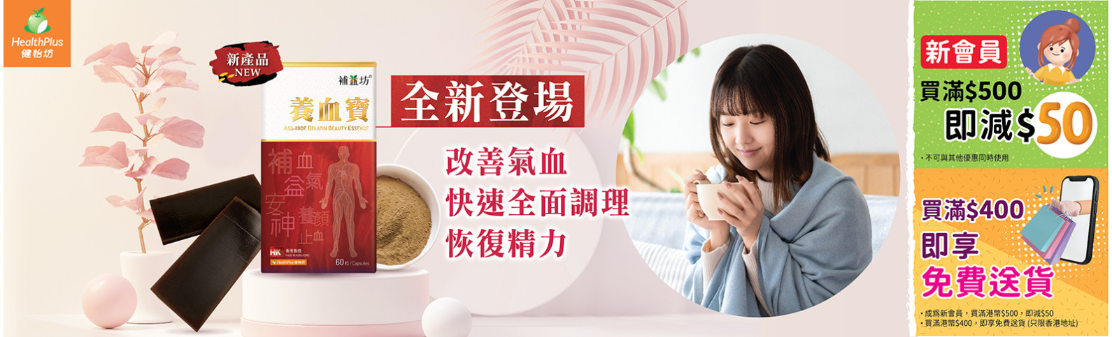購物滿 HKD400 免費送貨,新會員有迎新優惠券購物滿 HK 500 即減 HKD50,