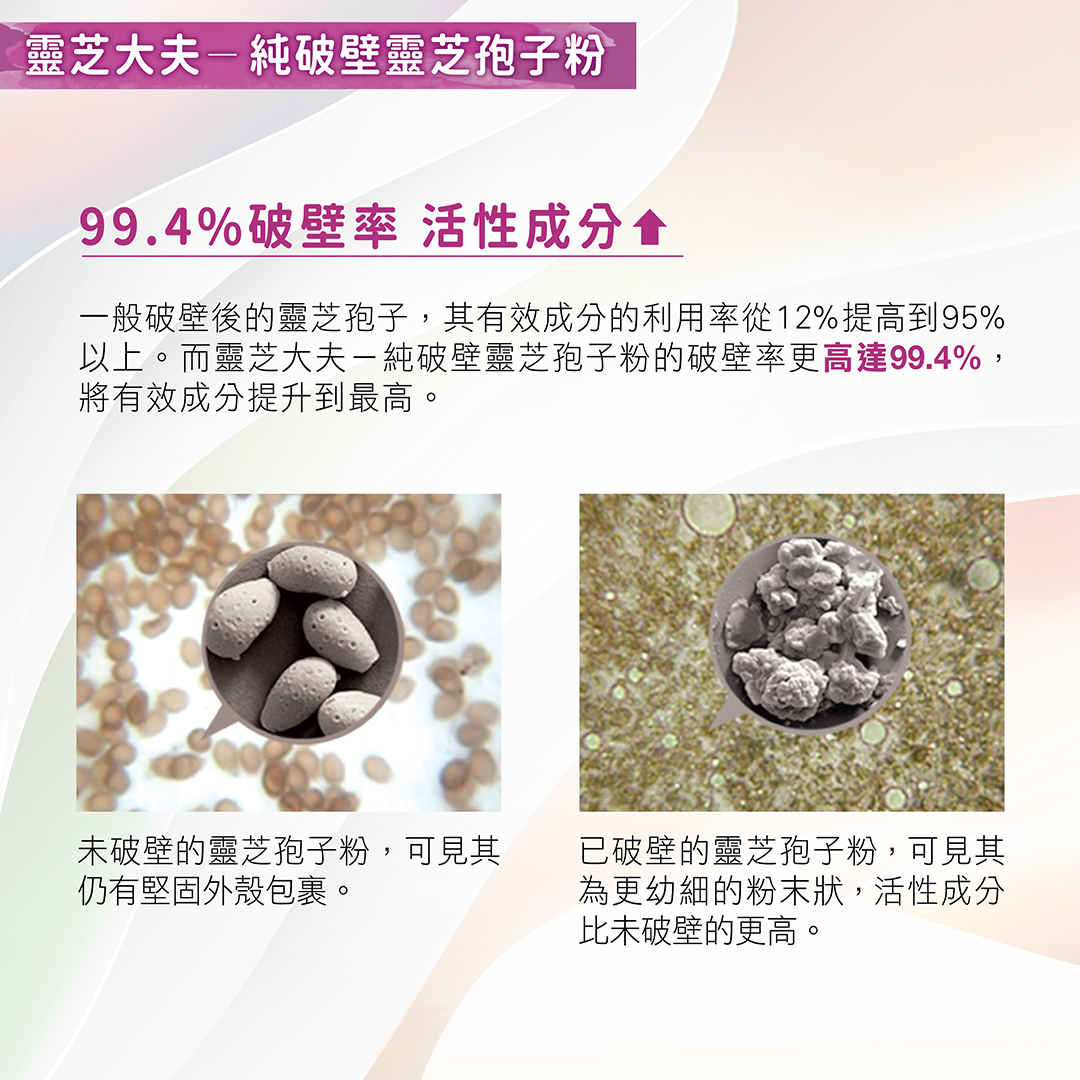纯破壁灵芝孢子粉能够通过增强体液和机体细胞的免疫功能、促进免疫细胞因数的产生及抗过敏等管道,有助增强及调节免疫力,特别适合注重健康和免疫力低的人士服用。