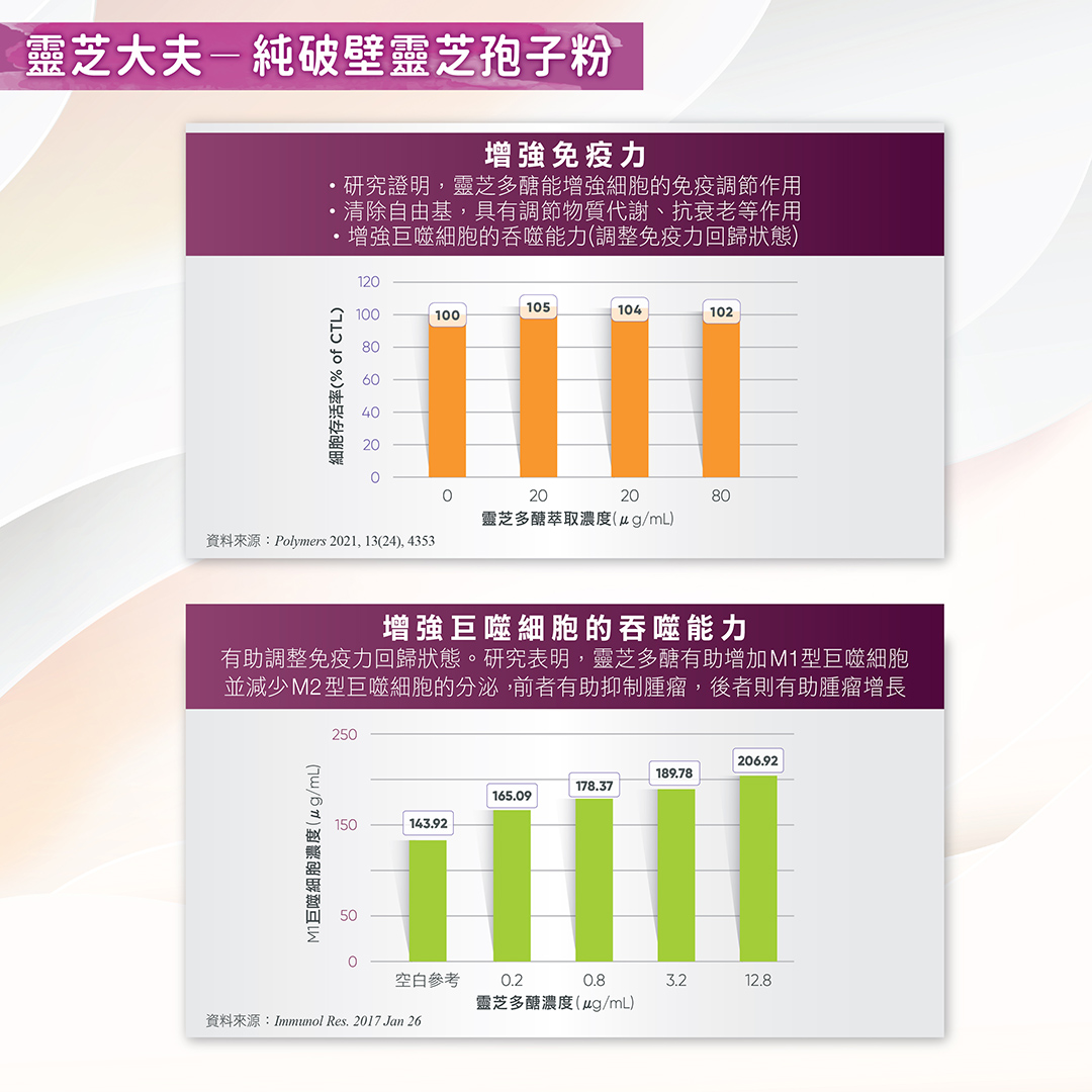 - 研究证明,灵芝多糖能增强细胞的免疫调节作用。